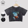 Paradise Beach Coconut Prints Cotton Crop Tops All-Math Summer Lace Hem Washed T-Shirt Regular Fit O-Neck Tees Casual Clothes