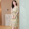Silk print silk dress summer new adjustment waist seaside vacation silk dress