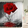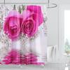 1Pcs art rose waterproof shower curtain, flower-style flowers bathroom decorative curtain with plastic hooks