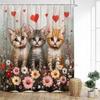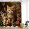 Urocze Koty Zasłona Prysznicowa Vintage Akwarela Kwiatowa Roślina Zwierzęta Zwierzę Domowe Dzieci Zasłony Kąpielowe Tkanina Domowa Dekoracja Łazienki z Haczykami