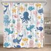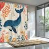 Niebieski Wieloryb Dziecięca Kreskówka Motyw Podwodny Wodoodporna Zmywalna Poliestrowa Zasłona Prysznicowa 180 x 180cm z 12 haczykami