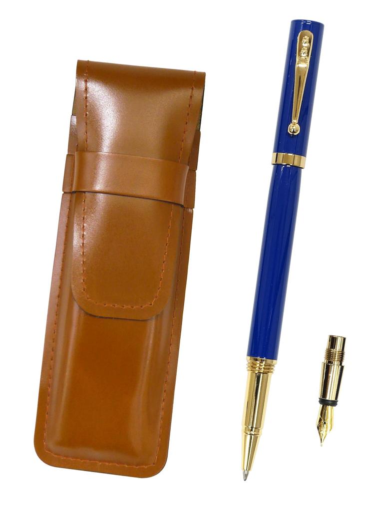Slim Brown Leather Pen Case for Exchange BP ZX Fountain Pen Ink with Blue Set (Individual Container) (T23-ASC-ZX-L)