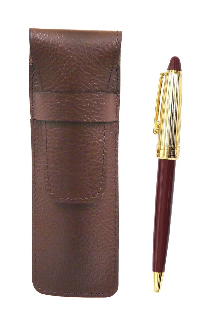 Zestaw piórnika z japońskiej groszkowanej skóry bydlęcej i japońskiego długopisu kulkowego w stylu retro (złoty + czerwony korpus)