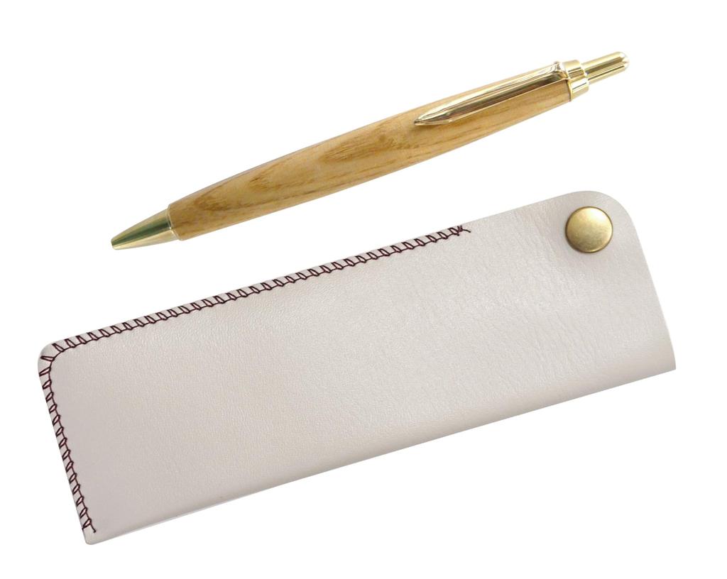 White Pen Case with Maple Wood Barrel and Retro Ballpoint Pen Set Two-Pack Hook-and-Loop (NK01W-HS47S-2)