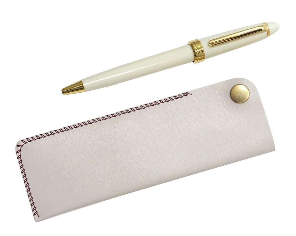 White horizontal snap pen case with Neo ballpoint pen set D-600 (3-pack, white, T23-NK01W-600B-W-3)