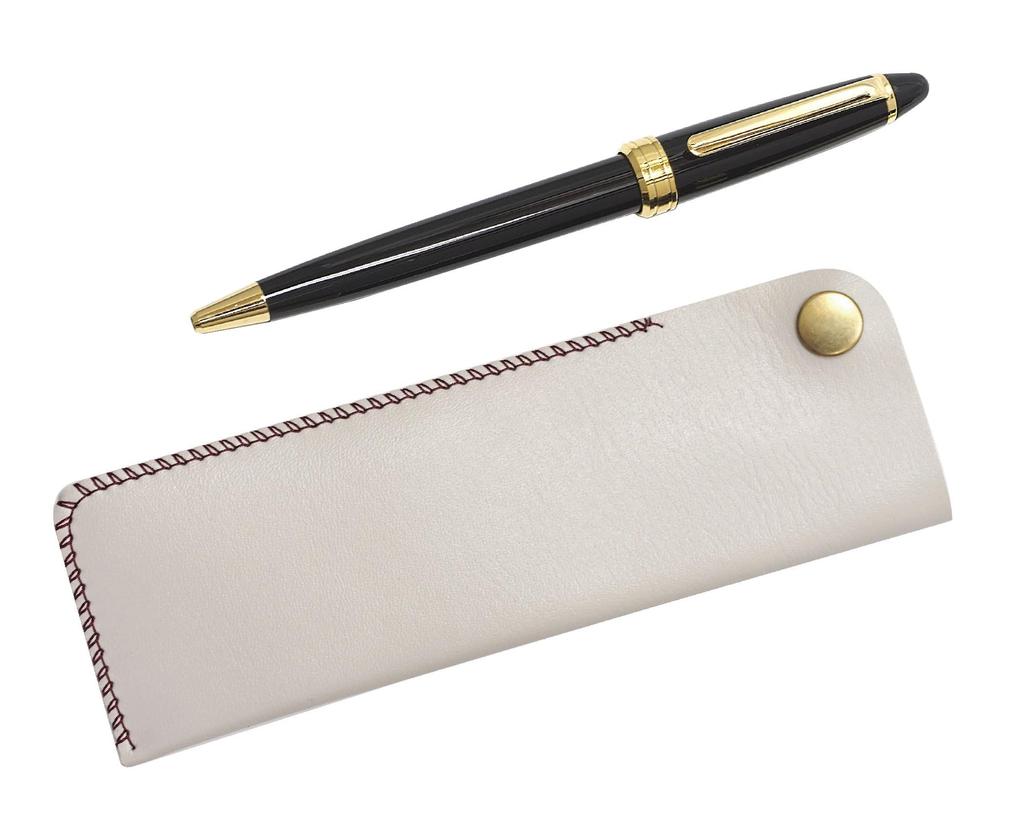 White horizontal snap pen case with Neo ballpoint pen set D-600 (3-pack, black) T23-NK01W-600B-B-3