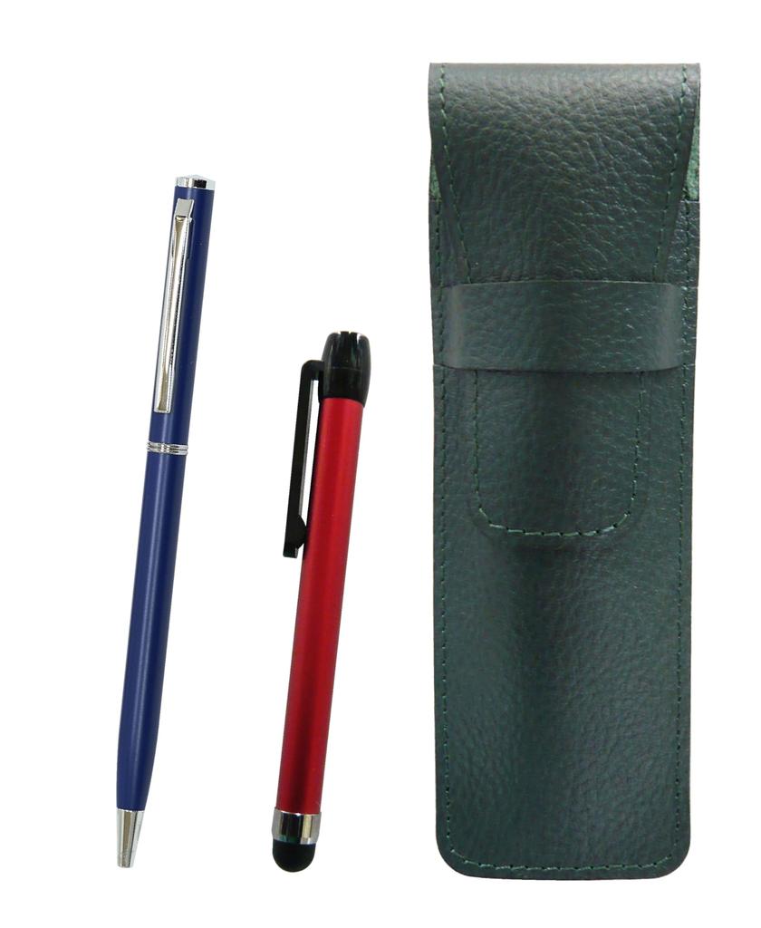 A set of a Japanese-made grained cowhide pen case, a Japanese-made smartphone stylus pen, and a thin-shaft ballpoint pen (blue shaft)