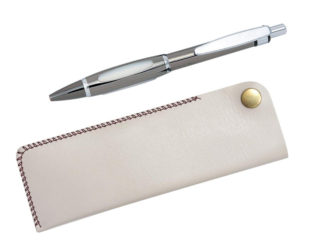 Takizawa White Pen Case with Metal Scorpion and Graphite Ballpoint Pen Set Hook-and-Loop (3-Pack) T23-NK01W-B989S-3