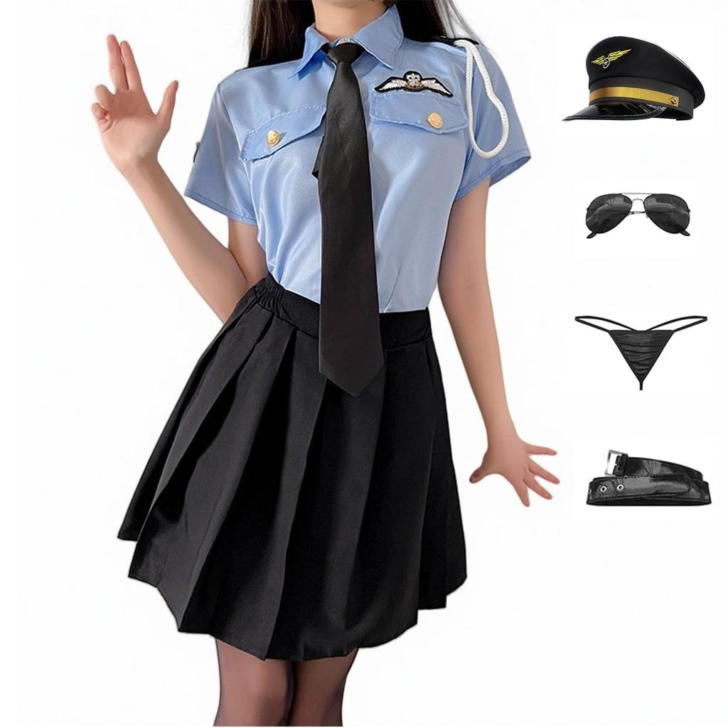 💖 [Luxurious Set] This complete set includes a top, skirt, tie, hat, sunglasses, belt, and thong. This simple yet sophisticated police costume is a popular police cosplay costume! With the clothes and accessories in this set, you can instantly transform into a cute and sexy police officer.