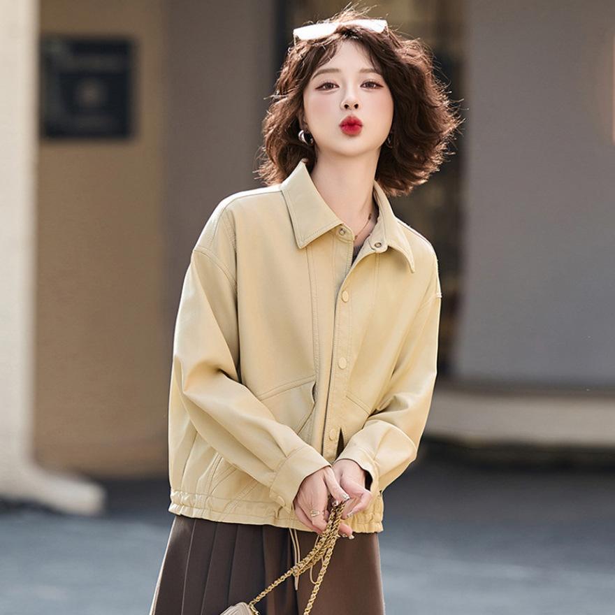Fashion leather jacket women's short spring and autumn new popular beautiful top casual loose motorcycle jacket