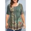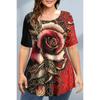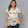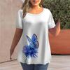 Letnia Koszulka Damska Plus Size z Okrągłym Dekoltem i Nadrukiem 3D Kwiatów i Motyli, Modna, Codzienna, Krótki Rękaw