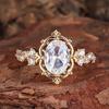Luksusowe kryształowe różowe cyrkonie owalne kamienne pierścienie kwiatowe dla kobiet Vintage różowe złoto kolor obrączka ślubna biżuteria ślubna prezent zaręczynowy