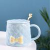 Lekki Luksus Relief Filiżanka do Kawy Wysoka Wartość Kokarda Ceramiczna Filiżanka z Pokrywką Łyżeczka Ekskluzywny Domowy Kubek dla Pary