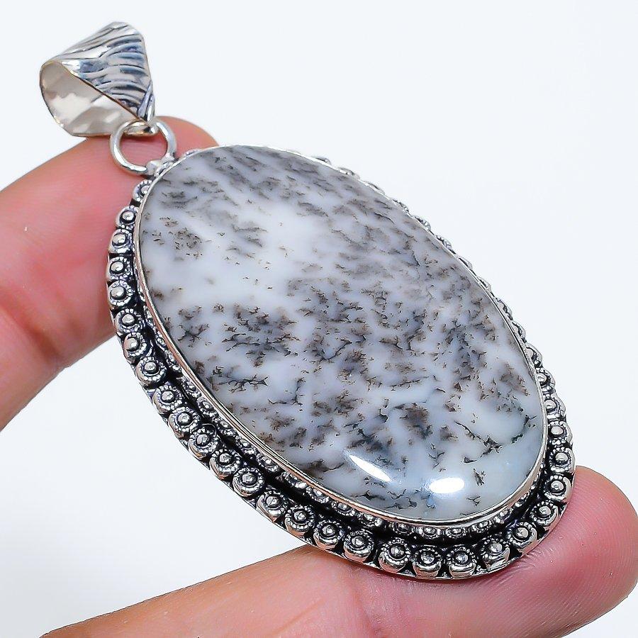 Dendrite Opal Gemstone Handmade 925 Sterling Silver Jewelry Pendant 2.60" SU-10675