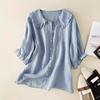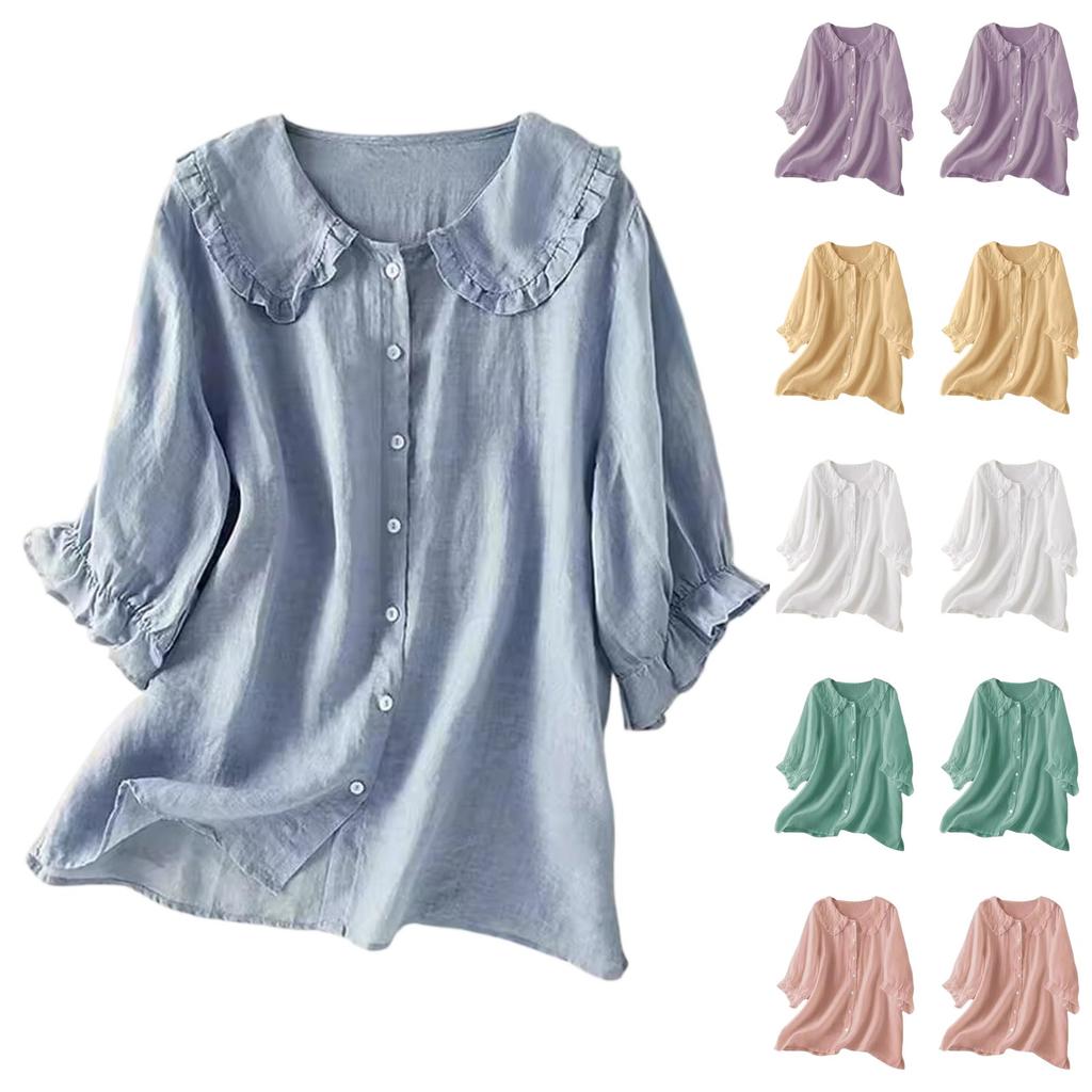 Damskie Codzienne Modne Bluzki Jednokolorowe Średni Rękaw Top na Guziki