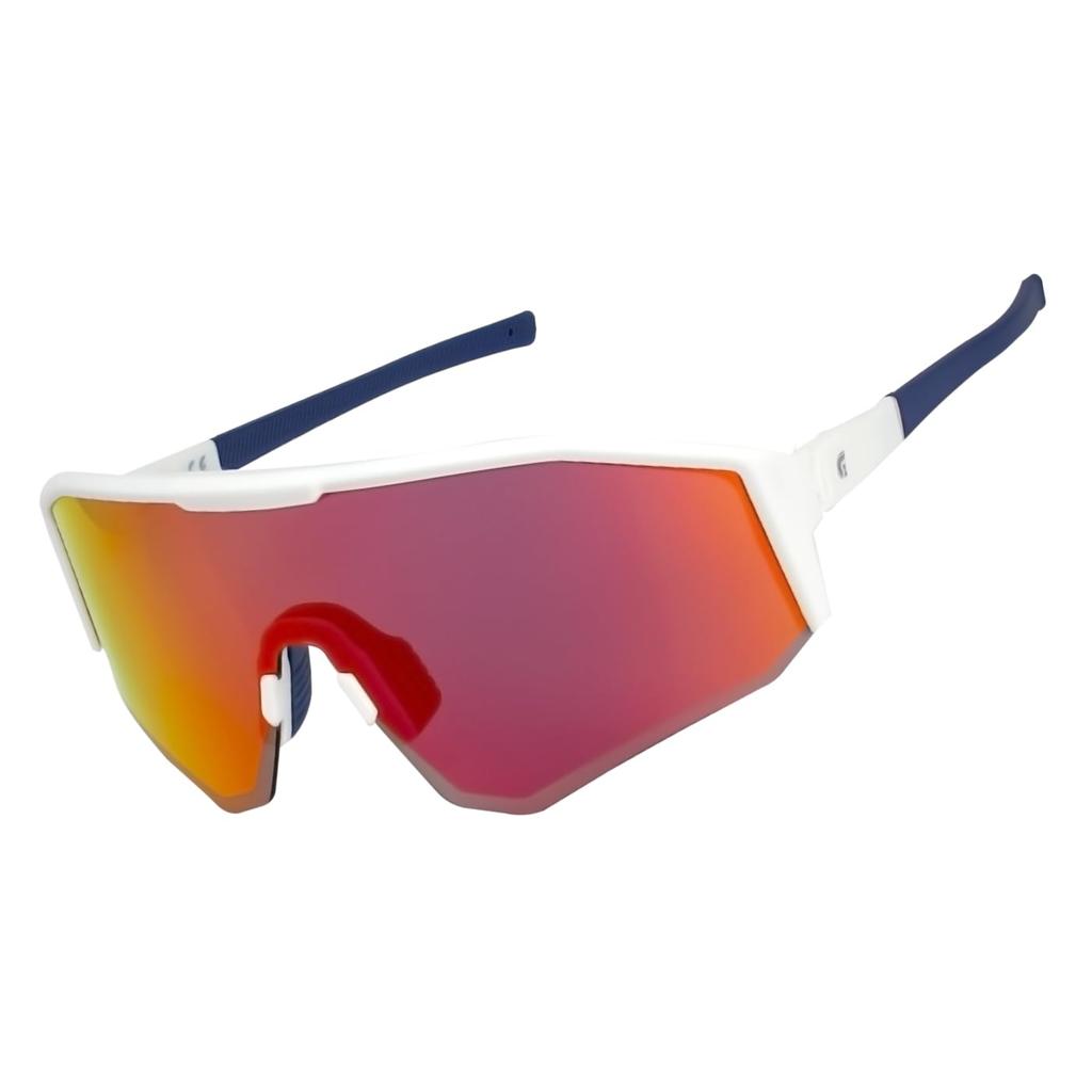Te sportowe okulary przeciwsłoneczne posiadają soczewki polaryzacyjne, które redukują odblaski i refleksy.