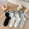 Szaro-białe Skarpetki, Damskie Skarpetki do połowy łydki z kokardą, Letnie Cienkie Siateczkowe Ażurowe Jednokolorowe Uniwersalne Skarpetki Frotte