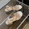 Sheepskin version French silver bow thick heel bag head shoes women's summer outer wear medium heel rhinestone Mary Jane high heel sandals