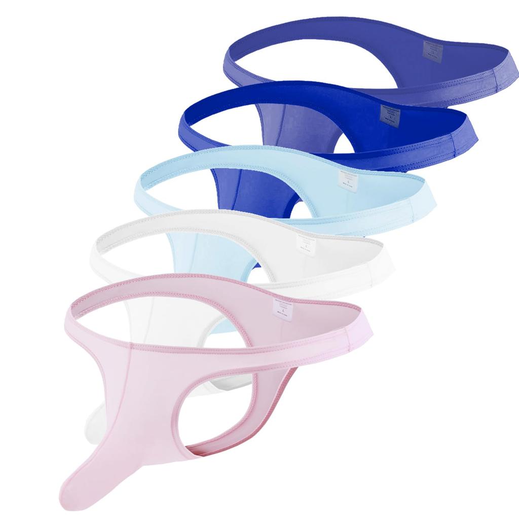 Laipin 3D Ice Silk Solid Men's T-Back Underwear, Construction, Ultra-Thin, Sexy, Comfortable, G-String Briefs, Breathable, Color, 5-Pack