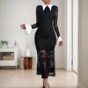2025 new sexy and elegant lace long-sleeved lapel color-blocking temperament celebrity high-end dress