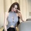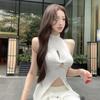 Dzianinowa kamizelka bez rękawów z wycięciami i skrętem Damska letnia seksowna bielizna wierzchnia Dopasowany top z rozcięciem dla gorącej dziewczyny
