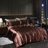 Luxury Satin Bedding Set with Flat Sheet Duvet Cover High End Bedding Set High Density Satin Solid Color Bedding