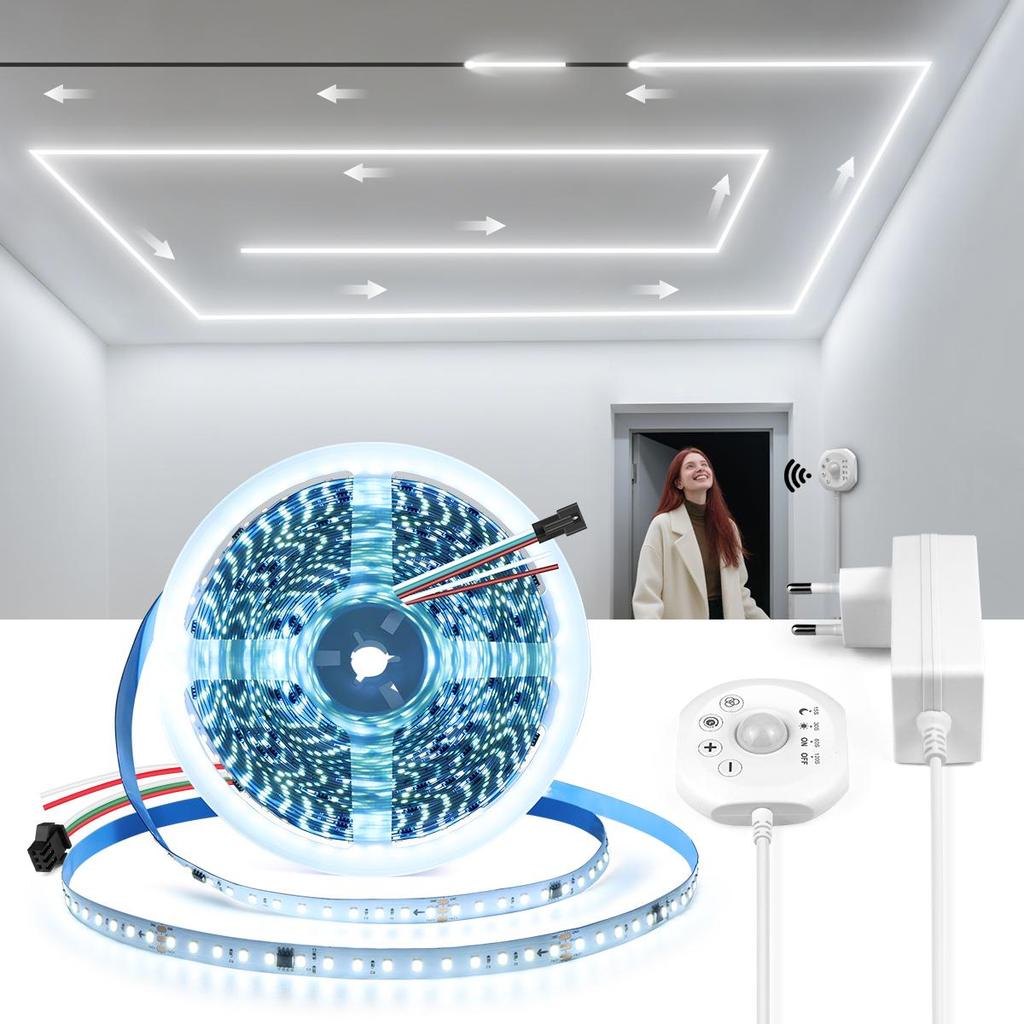5M 10M Płynąca Woda LED Taśma Świetlna Czujnik Ruchu PIR Światło Nocne 24V Światło Wyścigowe Koni Ściemniana Elastyczna Lampa Liniowa Timer WŁ./WYŁ.