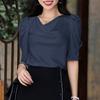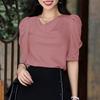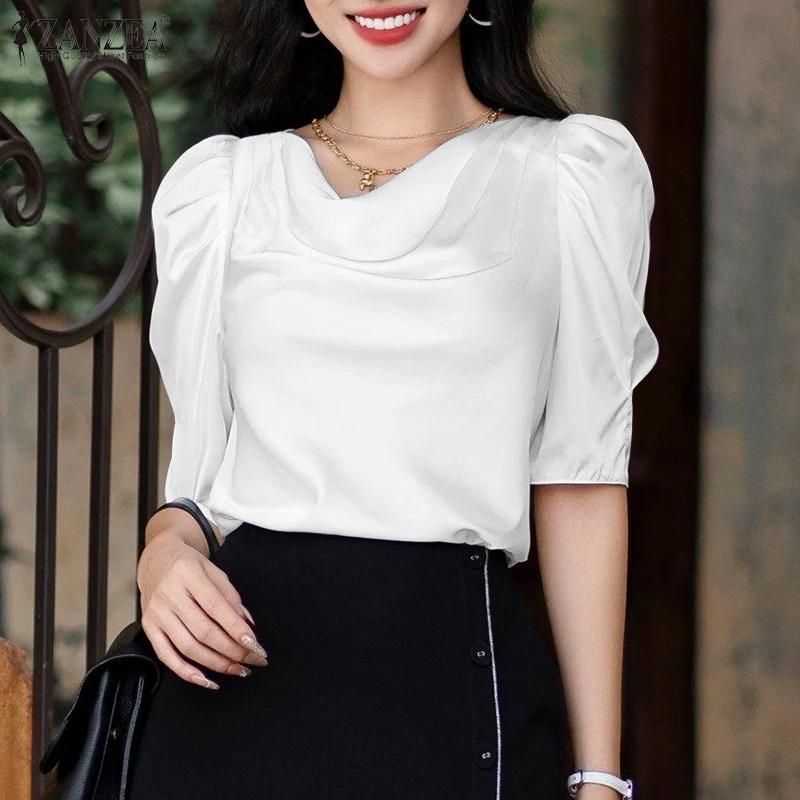 ZANZEA Damska casualowa bluzka z kołnierzem ze sztucznego futra, gładka, z krótkim rękawem