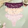 FINETOO 3 szt. Koronkowe majtki stringi z kwiatowym wzorem, ażurowe, gładka bielizna damska, seksowne, z niskim stanem, wygodne stringi, gorące dziewczyny, erotyczna bielizna