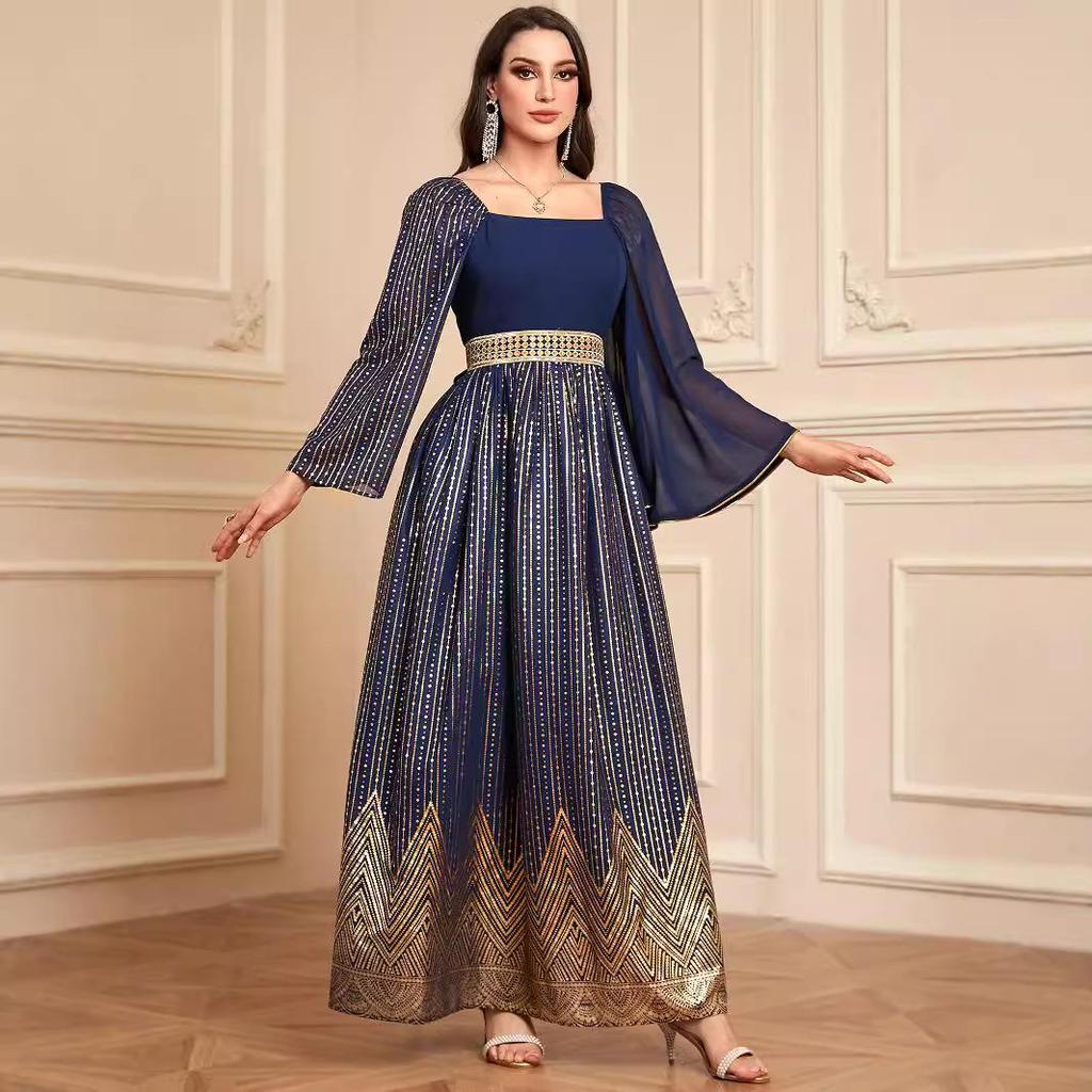 Ta wykwintna arabska szata prezentuje urzekające połączenie tradycyjnych i współczesnych elementów wzornictwa, idealna dla tych, którzy szukają wyjątkowego i eleganckiego wyglądu.. Wykonana z najwyższej jakości szyfonu, zapewnia lekki i wygodny noszenie. Szlafrok ma oszałamiający kwiatowy wzór hot stamping, który łączy wpływy europejskie i amerykańskie, dodając odrobinę wyrafinowania i nowoczesności klasycznej sylwetce.. Idealny na różne okazje, ten szlafrok bez wysiłku łączy dziedzictwo kulturowe ze współczesną wrażliwością modową.