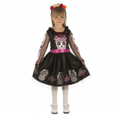 Kostium Dzień Zmarłych Dziewczynka - Szkielet - Czarny - Poliester - Certyfikowany UE