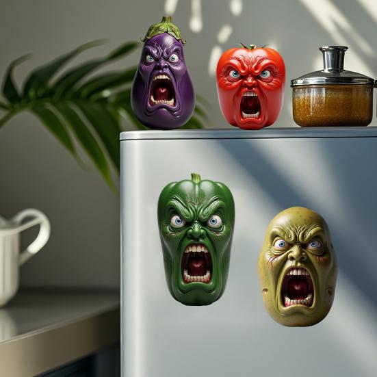 Krzyczące Warzywa Figurka Żywica Emocjonalne Warzywa Ornament Zły Krzyczący Marchew Pomidor Papryka Statuetka do Dekoracji Kuchni Stół Jadalny