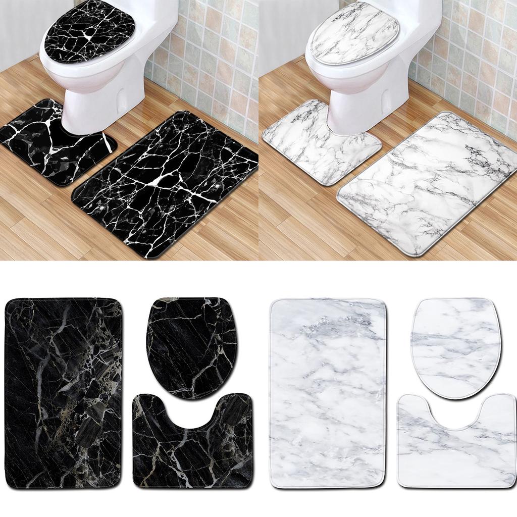 Zmień swoje doświadczenie w łazience dzięki 3-częściowemu zestawowi mat łazienkowych z włókna poliestrowego o wzorze marmuru, zawierającemu maty w kształcie litery U, kwadratowe i owalne dla komfortu i funkcjonalności.