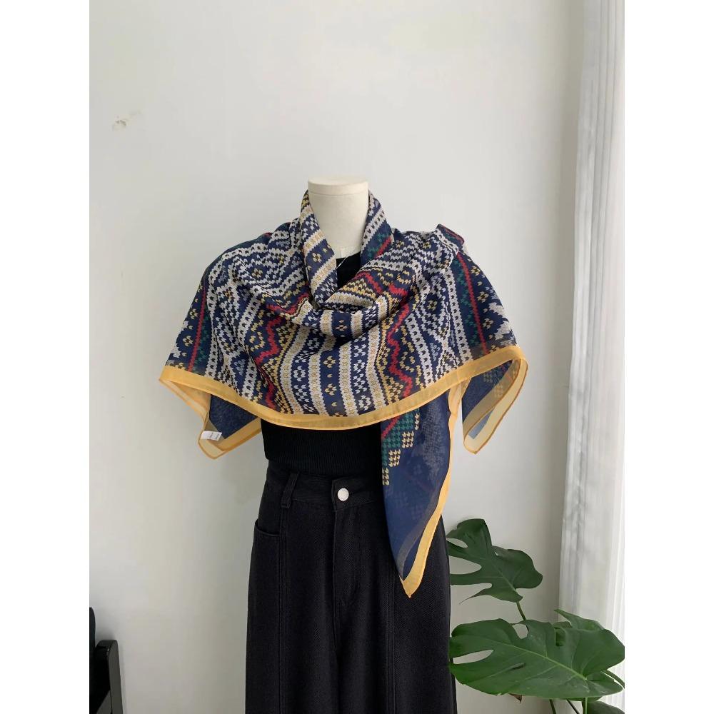 Head Scarf Women Square Scarf Thin Silk Like French Vintage Shawl Exclusive Design Spring Summer Autumn Lightweight Multipurpose