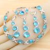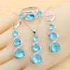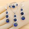Klasyczny niebieski cyrkon 925 srebrne zestawy biżuterii dla kobiet kolczyki naszyjnik wisiorek pierścień bransoletka prezent ślubny
