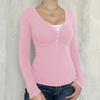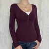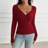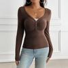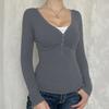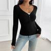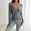 Damski top Y2K Slim zapinany na guziki z dekoltem w serek z długim rękawem dzianinowy t-shirt