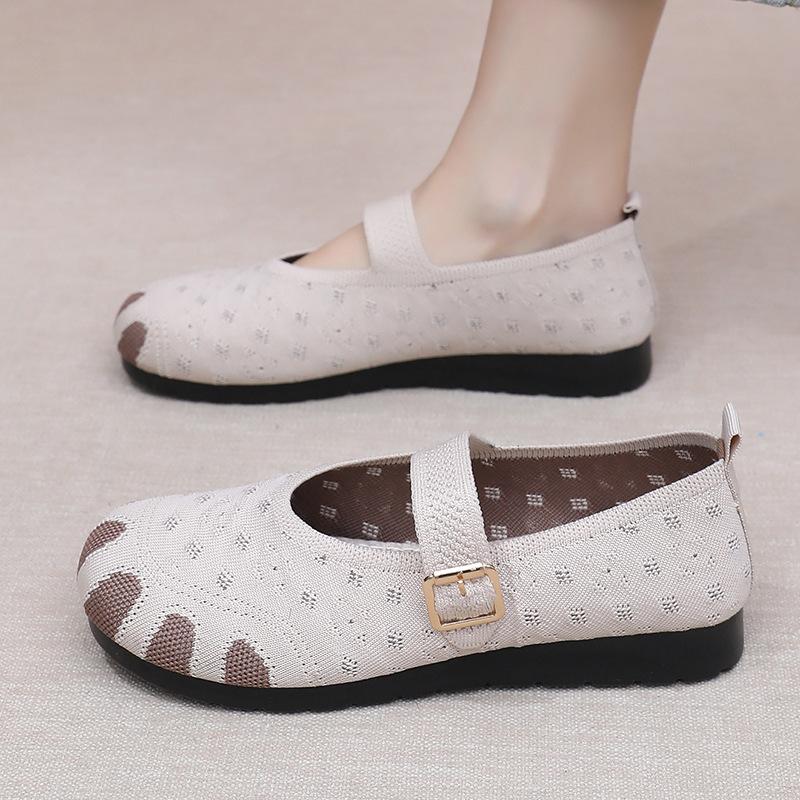 Spring new cloth shoes, women's soft-soled casual shoes, flat sole shoes, breathable non-slip shoes for the elderly, flying weaving women's shoes