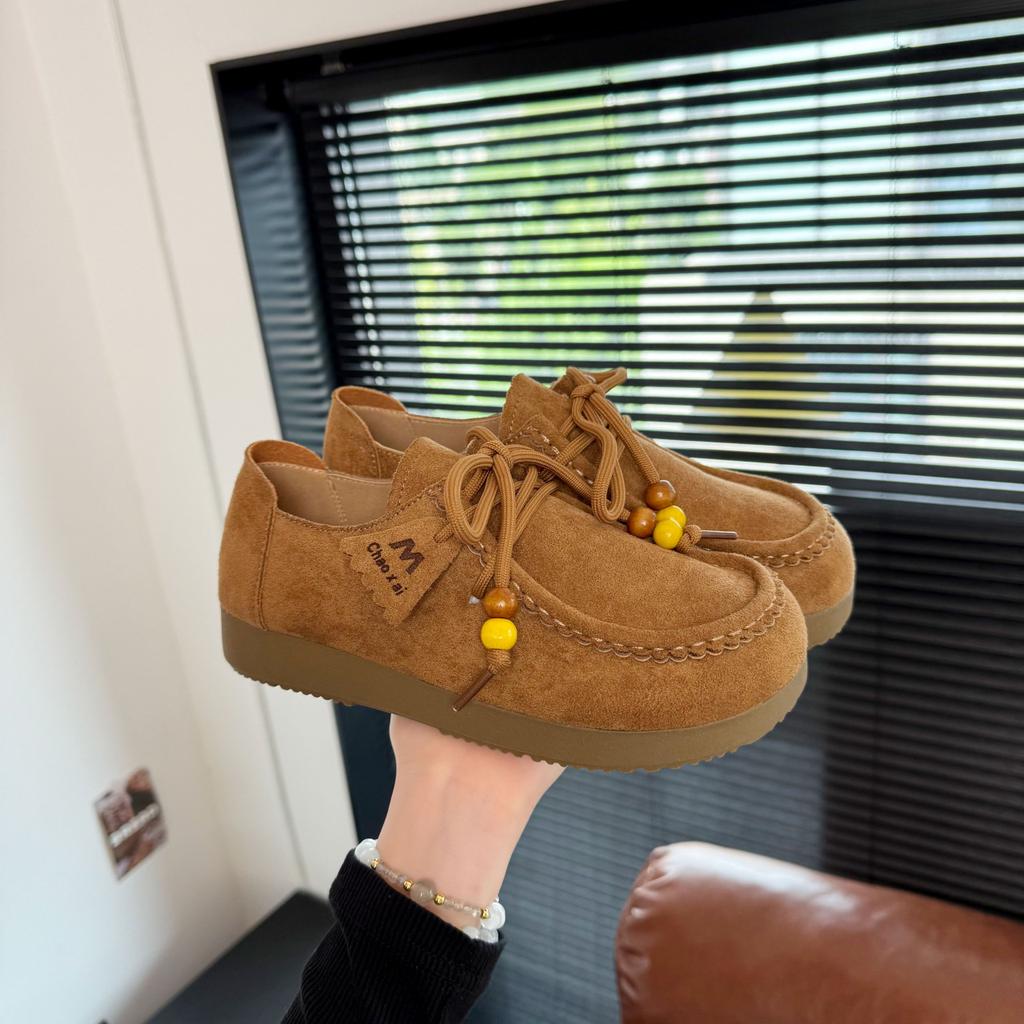 Modne buty kangurkowe na platformie damskie 2025 nowe retro wszechstronne leniwe do noszenia na dwa sposoby casualowe mokasyny