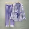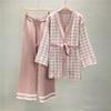 Damski jesienno-zimowy dzianinowy kardiganowy garnitur w stylu średnim do długiego z zestawem marynarki i spodni w pepitkę