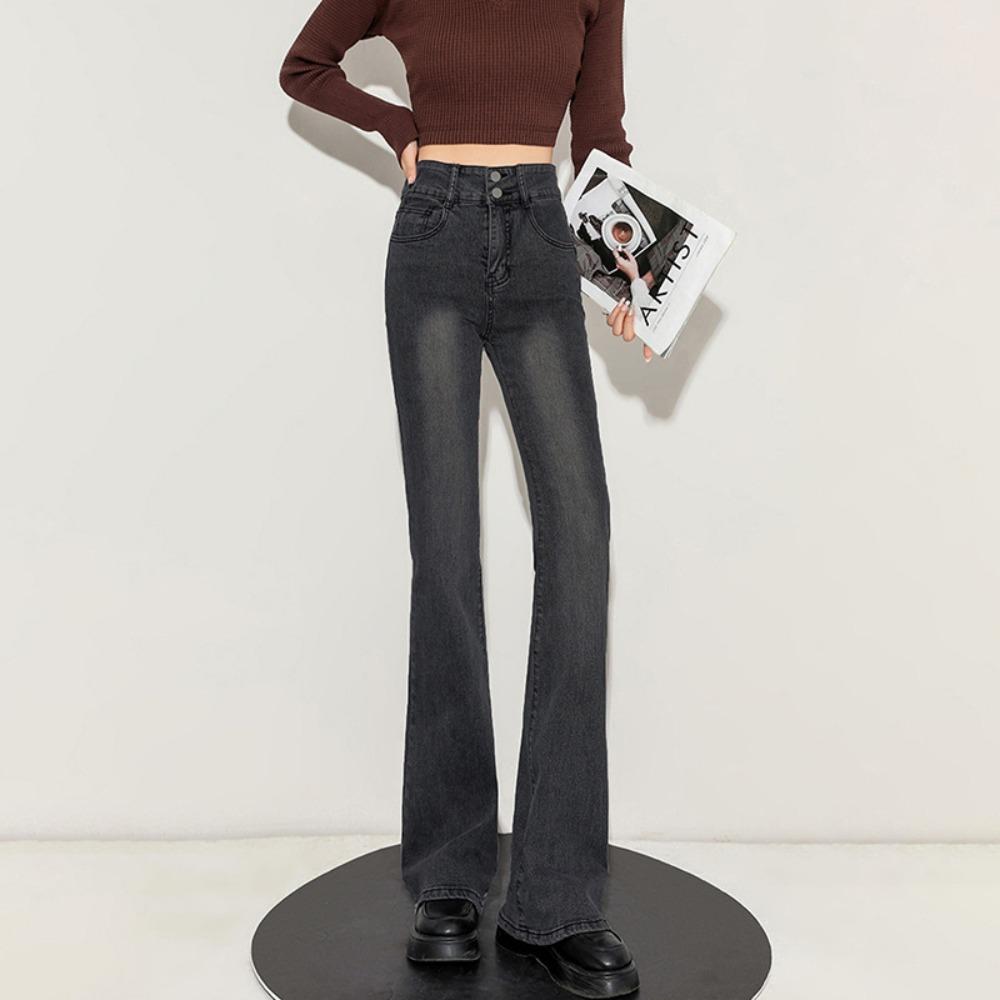 Spodnie dżinsowe mikro-rozszerzane Spice girl damskie wiosenno-jesienne z wysokim stanem cienkie z efektem zwisania do zamiatania podłogi retro spodnie podkowy tide