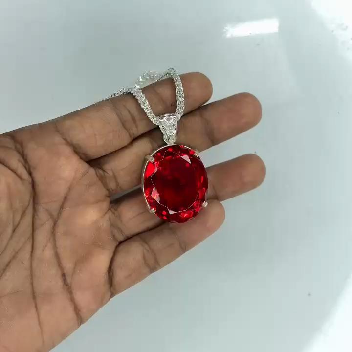 Srebro Próby 925 Zawieszka 101 Ct Naturalny Czerwony Topaz Szlif Owalny Certyfikowany Kamień MY.PD-59-NS