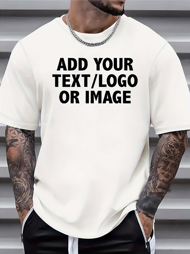 ADD YOUR TEXT/LOGO OR IMAGE Print Short Sleeve Tees For Men, Casual Quick Drying Breathable T-Shirt