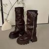 Klamra Paska Damskie Kozaki do Kolana Damskie Botki na Platformie z Grubą Podeszwą na Nogi Spodni Jesień Zima Damskie Buty