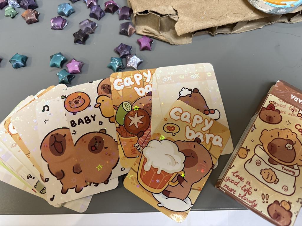 30 szt. Kawaii dwustronne fotokarty z kapibarą, kreskówkowe brokatowe karty z kapibarą, karty kolekcjonerskie HD, urządzenia peryferyjne z anime, prezenty dla dzieci
