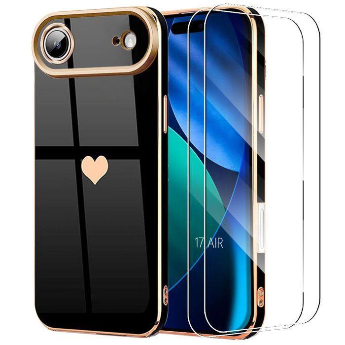 Coque de Protection - E.F.Connection - pour iPhone Air - Motif Cœur Silicone Noir - 2 Verres Trempés