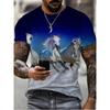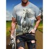 Męski T-shirt z nadrukiem 3D wzoru białego konia, Humoryczny T-shirt z nadrukiem cyfrowym z krótkim rękawem, Oddychający poliester, Okrągły dekolt, Casualowy