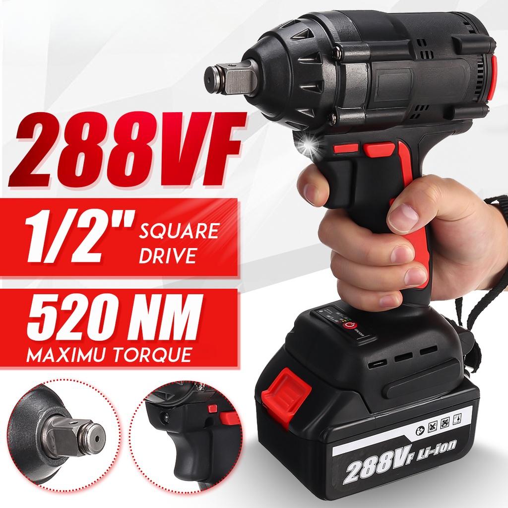 Klucz udarowy bezszczotkowy 288vf 1/2"" 520NM maksymalny silnik na baterię Li-ion klucz elektryczny z 2/1/0 baterią