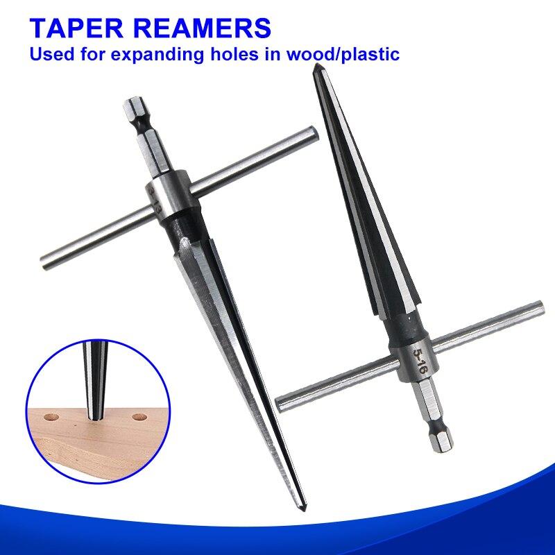 Woodwork Taper Reamer 3-13/5-16mm Wooden Board Electric Drill Hole Expanding Chamfer and Deburring Hexagonal Handle Cut Tool