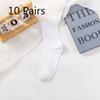 10 Pairs of White Pile Socks, Women's Mid-calf Cotton Socks, Trendy Spring and Autumn Styles, Summer Loose Mooncake Long Socks, Autumn and Winter