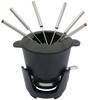Widelczyki do fondue: 6 Fondiarka: Żeliwo Osobliwości: ochrona przed pryskaniem Zawartość dostawy: Bezpieczny palnik do pasty, brytfanna, stojak